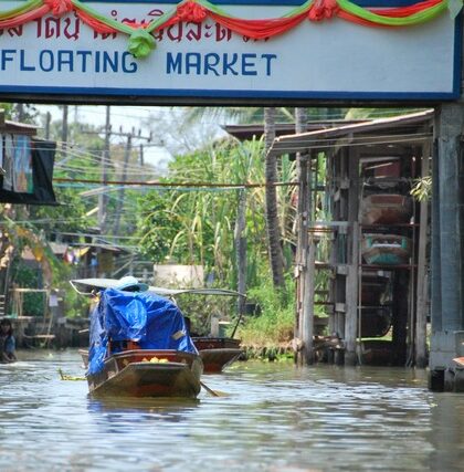 Wyrywamy się z Bangkoku, żeby zobaczyć słynny tajski pływający targ. Wsiadamy na łódkę i wązkimi kanalikamii przebijamy się pomiędzy straganami i pływającymi sklepikami. Niestety, obecnie klientelą marketu są głównie turyści, …