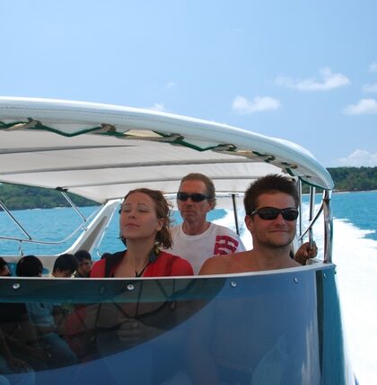 Na zakończenie kambodżańskiego urlopu mamie Bartka należy się trochę wody i piasku. Wracamy więc do Sihanoukville, żeby stamtąd przerzucić się na dwa-trzy dni na jakąś małą wyspę. Rozmawiamy z kim …