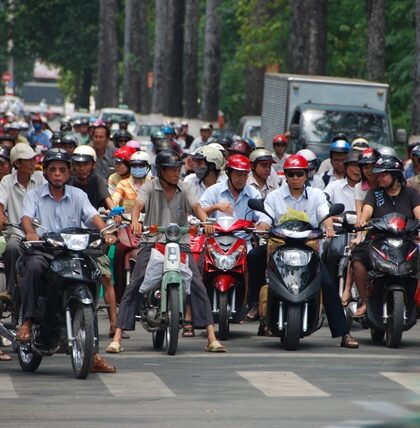 W Sajgonie są przede wszystkim motory. Całe ulice załadowane motorami. Z rzadka przemknie samochód osobowy albo ciężarówka. Jeżdżą wszyscy na trzy cztery, ignorując światła. Poza tym w Sajgonie jest kilka …