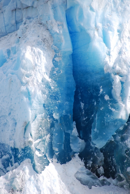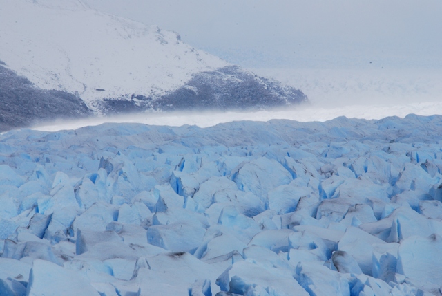 Przed nami znienacka wyrósł szeroki na 4 km i wysoki na 60 m!!! wchodzący do turkusowego jeziora biały lodowy jęzor. Lodowiec przez cały czas postępuje – dziennie przybywa po 2 m lodu!!! Gdy środkowa część wydłużającego się jęzora dotrze do końca jeziora i dotknie skał, powstają dwa jeziora oddzielone lodowcem. Poziom wody w jednym z nich podnosi się wówczas nawet do 17 metrów. Wreszcie czoło lodowca nie wytrzymuje naporu wody. Najpierw woda drąży pod lodem wielki tunel pomiędzy jeziorami. Po pewnym czasie tunel zawala się, wśród huku i bryzgającej wody….