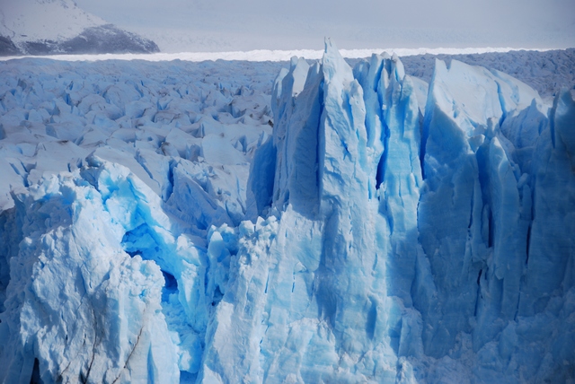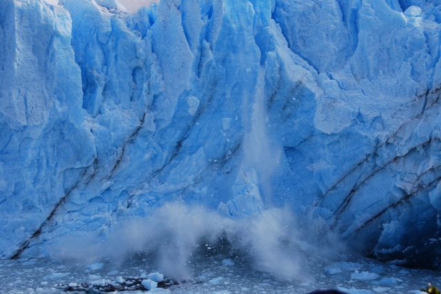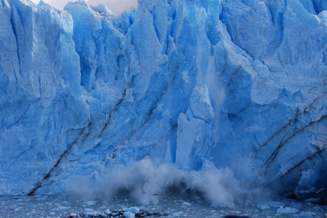 Tym razem jeziora były jeszcze połączone. Z tarasów wybudowanych vis a vis czoła lodowca obserwujemy, jak gigantyczne bloki lodowe wielkości kilkupiętrowych budynków odrywają się i z hukiem wpadają do jeziora…