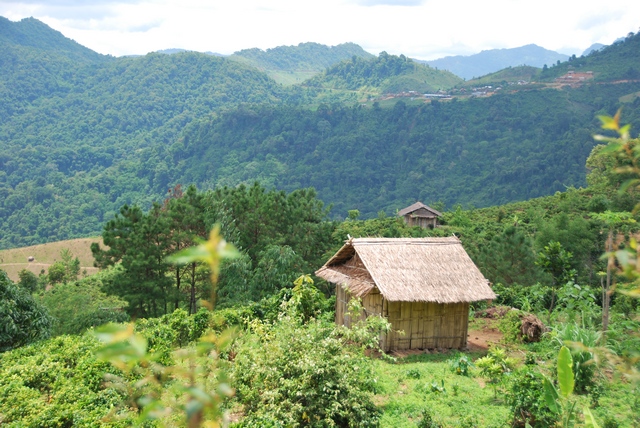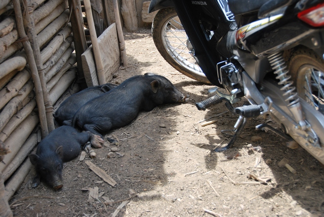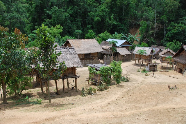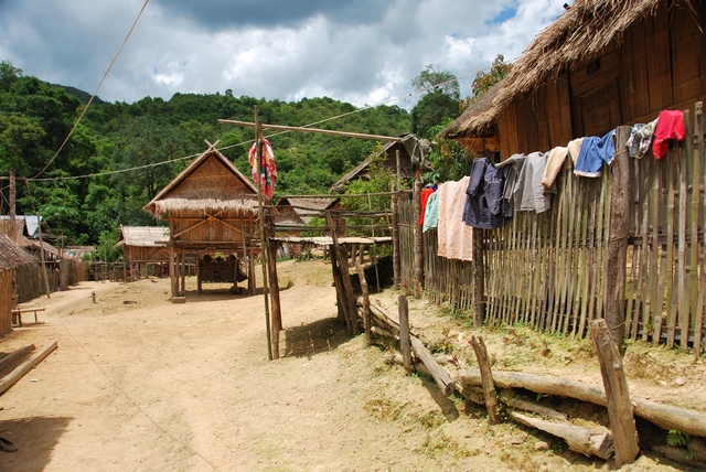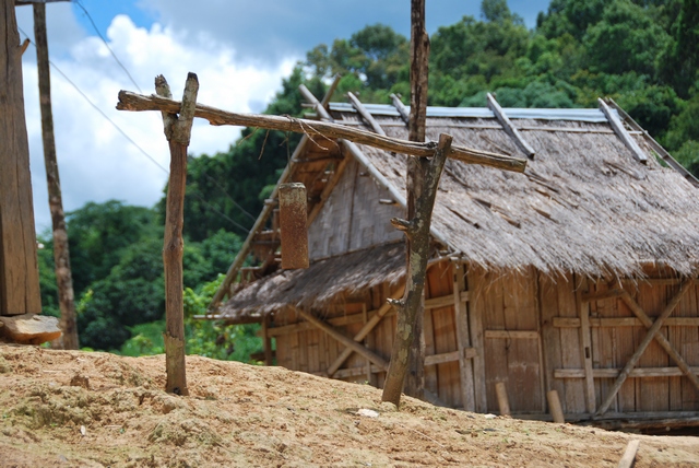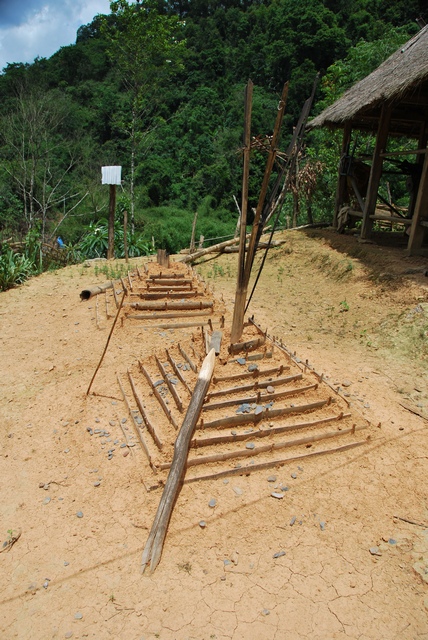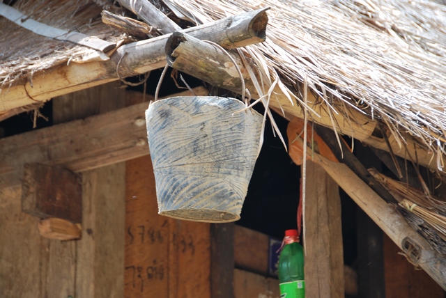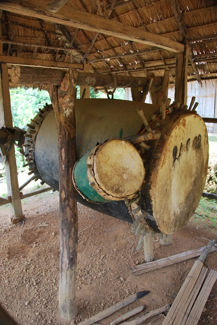Następnego dnia eksplorujemy okolicę. Docieramy do małej bambusowej wioski. Pusto, prawie wszyscy w polu. Rozglądamy się. Fajne rzeczy tu mają: dziwne kopce, bębny, gong do alarmowania wsi…