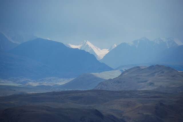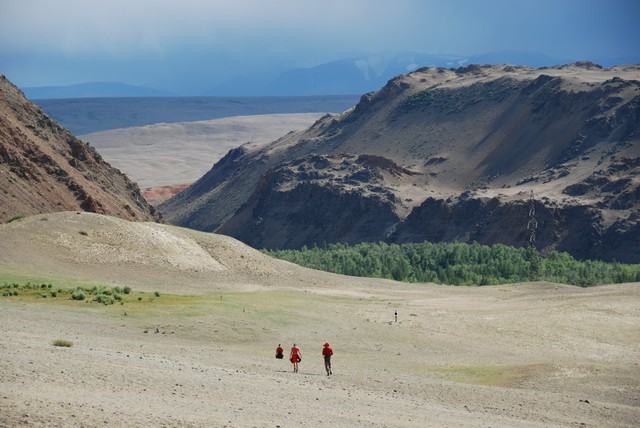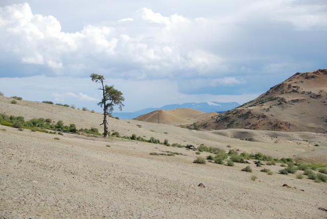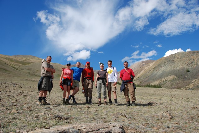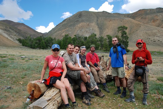 Następnego dnia zaczyna nas nosić, coś by się już zrobiło. Wkoło całkiem fajne górki. Postanawiamy zaatakować. Ktoś jednak musi zostać pilnować obozu, więc robimy losowanie. Pada na Cheewbakę i Ewę. Ruszamy, najpierw doliną górskiego potoku. O tej porze roku to w zasadzie tylko maleńki strumyczek, ale widać, że wiosną musi być pokaźną rzeką. Upał, wszęszie skaczą (a raczej fruwają) owady przypominające przerośniętego pasikonika z czerwonymi skrzydelakami. Pojawiają się susliki – słodziutkie, taki trochę ałtajski odpowienik wiewiórki. Ciężko je wypatrzeć, bo są koloru otaczających skał: szaro-brązowe. Strasznie, skubane, zwinne. Mijamy dolinkę, robi się stromo. Ale widoki piękne. Nad sąsiednim szczytem burzowe chmury i grzmi. Trochę siada morale, ale wygląda, że przejdzie bokiem, więc wspinamy się dalej. Dochodzimy do 2588 m: porządnie się ochłodzilo, nad nami budują się brzydkie chmury. Robi się późno. Decyzja, że wracamy. „Bo jeśli można bez hardkoru i, przede wszystkim, bezpiecznie, to dlaczego nie?” :-)) Po powrocie szybki obiad i wyrwane zza biurek szczury korporacyjne padają jak muchy. Jutro atak na granicę mongolską, odsłona druga.