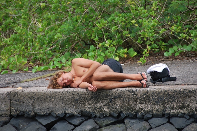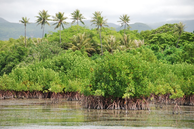 Spanie jest znowu przeraźliwie drogie. W rezultacie po krótkim rekonesansie zakładamy naszą bazę na końcu wąskiego cypla, pod palmową wiatą, u miłej wyspiarskiej rodzinki, otoczeni z trzech stron wodą. Wiata okazuje się absolutnym szczytem wyspiarsiej sztuki budowlanej. Brak ścian zapewnia miły przewiew, a jak pada rozłożysty dach fantastycznie chroni przed deszczem i silnymi porywami wiatru: w nienaruszonym stanie przetrwaliśmy solidną zawieruchę.