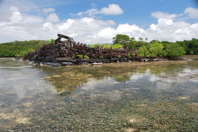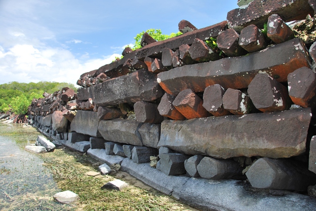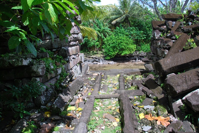 Na Pohnpei są też ruiny Nan Mandol, kamiennego miasta wybudowanego ok. XII w. n.e. z heksagonalnych, bazaltowych płyt. Ruiny zalewane są przypływami oceanu, oglądamy brodząc po kolana w wodzie.