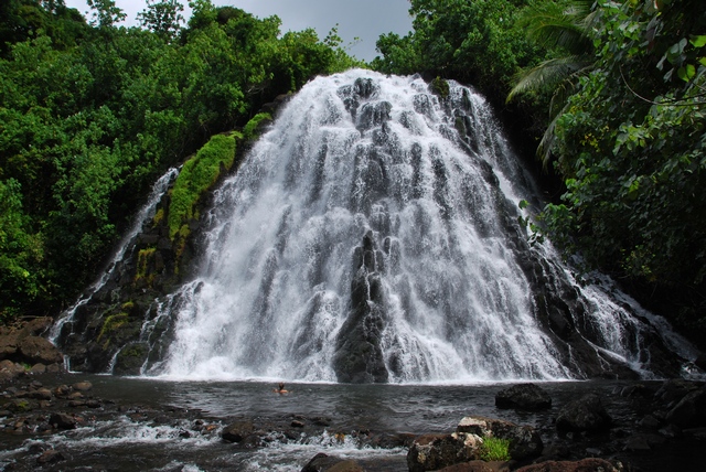 Pohnpei nie ma białych plaż, za to jej wzgórza pokrywa bujna, soczysta, przepiękna i dzika roślinność. Wśród palm i kwiatów ukryte wodospady, w których można sobie popływać, jak się człowiekowi np. za ciepło zrobi…