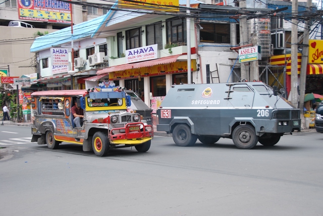Za to mają super fajne jeepny, czyli blaszane, kolorowe przedłużone jeepy do wożenia ludzi. Są też motory z boczną budką dla pasażera. Chlapie w nich w środku.