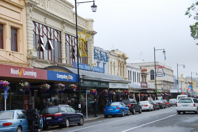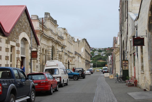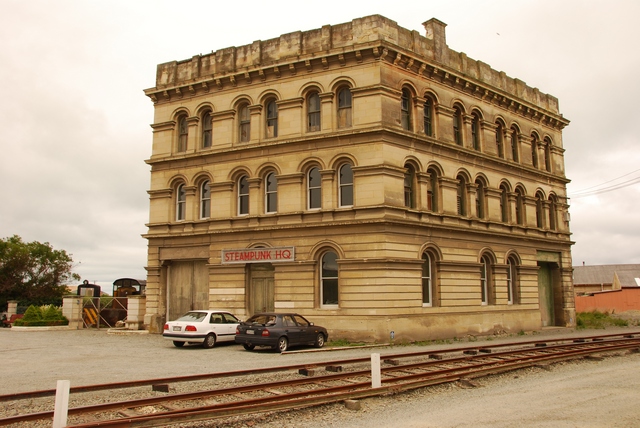 Parkujemy rowery. Piechotą zwiedzamy Oamaru, reklamowane jako miasteczko ogarnięte pingwinomanią. Niestety pingwiny są strasznie sprytne, liczą sobie słoną kasę za możliwość ich podejrzenia i nie pozwalają się fotografować. I z tym szaleństwem pingwinowym to też przesada: niewiele więcej niż kilka maskotek w sklepie z pamiątkami. Miasteczko ładne, klimatyczne, sporo budynków z XIX w, stara ciuchcia.