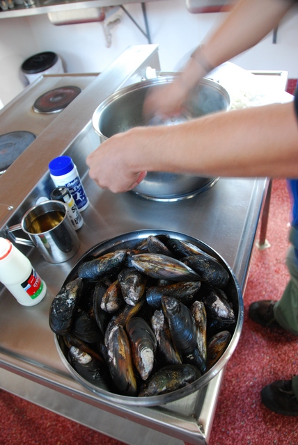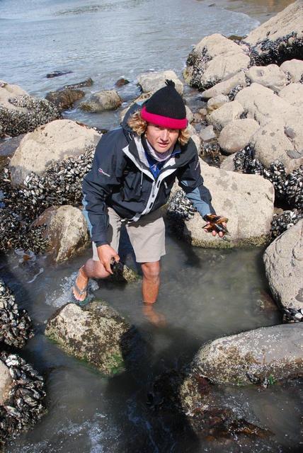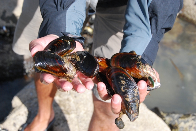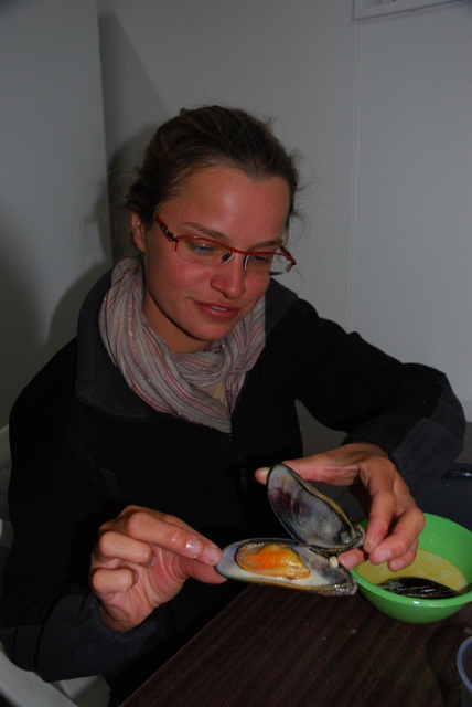 Wracając sobie plażą ze spaceru do lokalnej atrakcji – dziwnych, okrągłych kamieni (Moeraki Boulders) myślimy, co by tu zjeść. A tu przed nami skałka obrośnięta mulami…Zebraliśmy sobie więc kilka na kolację, będzie trochę białka dla naszych regenerujących się rowero-muskułów