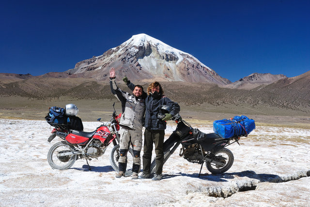 Ci, co mają połamane nogi zostają w La Paz uczyć się hiszpańskiego, a pozostali jadą na motorach na kilka dni pod ośnieżony wulkan Sajama na pograniczu boliwijsko – chilijskim…