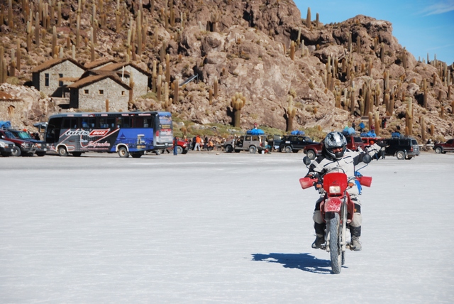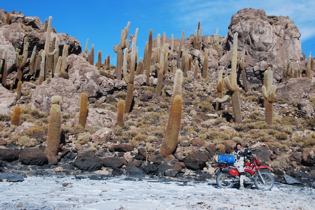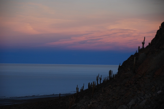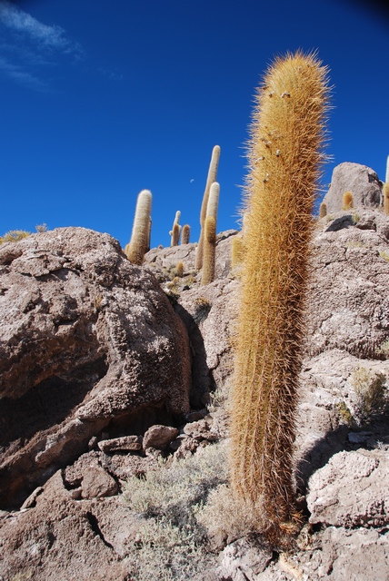 Dojeżdżamy do słynnej zarośniętej wielkimi kaktusami Isla Pescador. A tam za winklem czyha na nas zgrupowanie samochodów i tłum ludzi. Za wejście na wyspę trzeba zapłacić. Tu zatrzymują się wszystkie wycieczki mimo, że wkoło jest znacznie więcej równie ładnych, a często nawet ładniejszych wysp.Człowiek to stadne zwierzę.