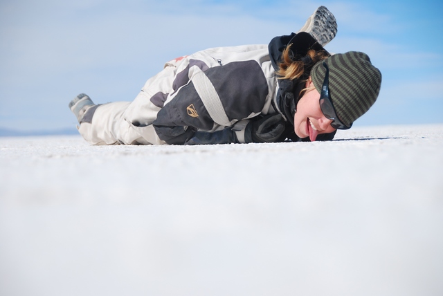 Ale, ale, miało być o salarze a nie o pomocy drogowej. Wyobraźcie sobie wielkie, zamarznięte, pokryte warstwą bielusieńkiego śniegu jezioro, na którym ktoś wymalował miliardy wielokątów. Tyle, że to nie śnieg, tylko sól. Sprawdziliśmy, żeby nie było. Słone jak diabli.