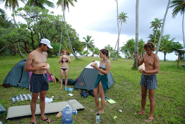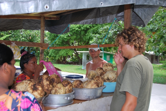 Następnego dnia odbieramy z lotniska Ulę, Jacka i Podgóra, którzy dobili do nas po tygodniowym pobycie na Hawajach. Zaczynamy poszukiwania transportu, który zabrałby nas na wyspę Jaluit albo Kili, skąd można będzie zobaczyć zaćmienie słońca. Trafiamy do portu. Mówią nam, że dziś odpłynie statek, który raz na kilka miesięcy rozwozi towar na okoliczne atole. W życiu trzeba mieć szczęście. Robimy zakupy na podróż, jesteśmy gotowi do wyruszenia. Czekamy i czekamy, aż w końcu decydują, że statek dziś nie odpłynie, bo nie zdążyli go załadować. Jutro też raczej nie popłynie, bo, jak wyjaśnił kapitan „Tu ludzie nie są przyzwyczajeni do pracy w niedzielę”. Prawdopodobnie wyruszą w poniedziałek. Kupujemy lokalną kartę telefoniczną, bierzemy numer do kapitana. Jedziemy na koniec atolu na plażę nocować pod namiotami. Będziemy kontaktować się telefonicznie z kapitanem i jakby co szybko zwiniemy się i stawimy w porcie.