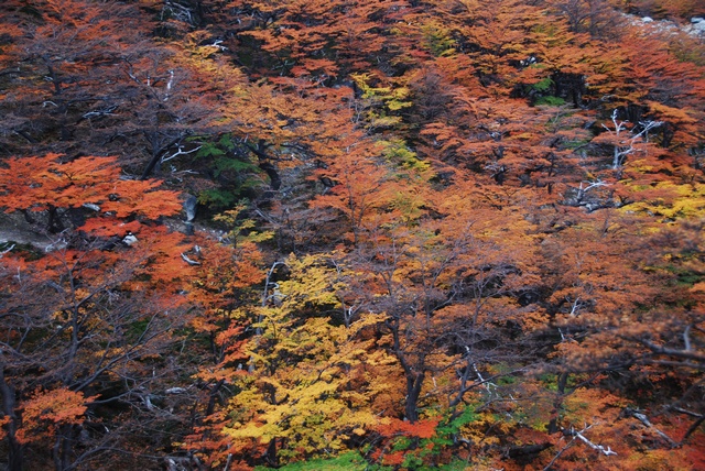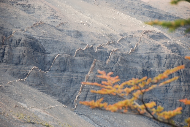 Doliny i niższe części gór pokrywa czerwono-złoty dywan jesiennych drzew, a wyżej piętrzą się dziwaczne formacje skalne. Mamy szczęście, bo ponoć potrafi tu padać tygodniami i niczego się nie zobaczy. Tymczasem jest przyjemnie: zimno, ale świeci słońce. Trochę przyspieszamy, żeby skorzystać z pogody i zobaczyć jak najwięcej i w rezultacie 4-5dniową trasę wykonujemy w 3 dni. I dobrze, bo ostatniego dnia pogoda się psuje. Zaczyna padać śnieg…