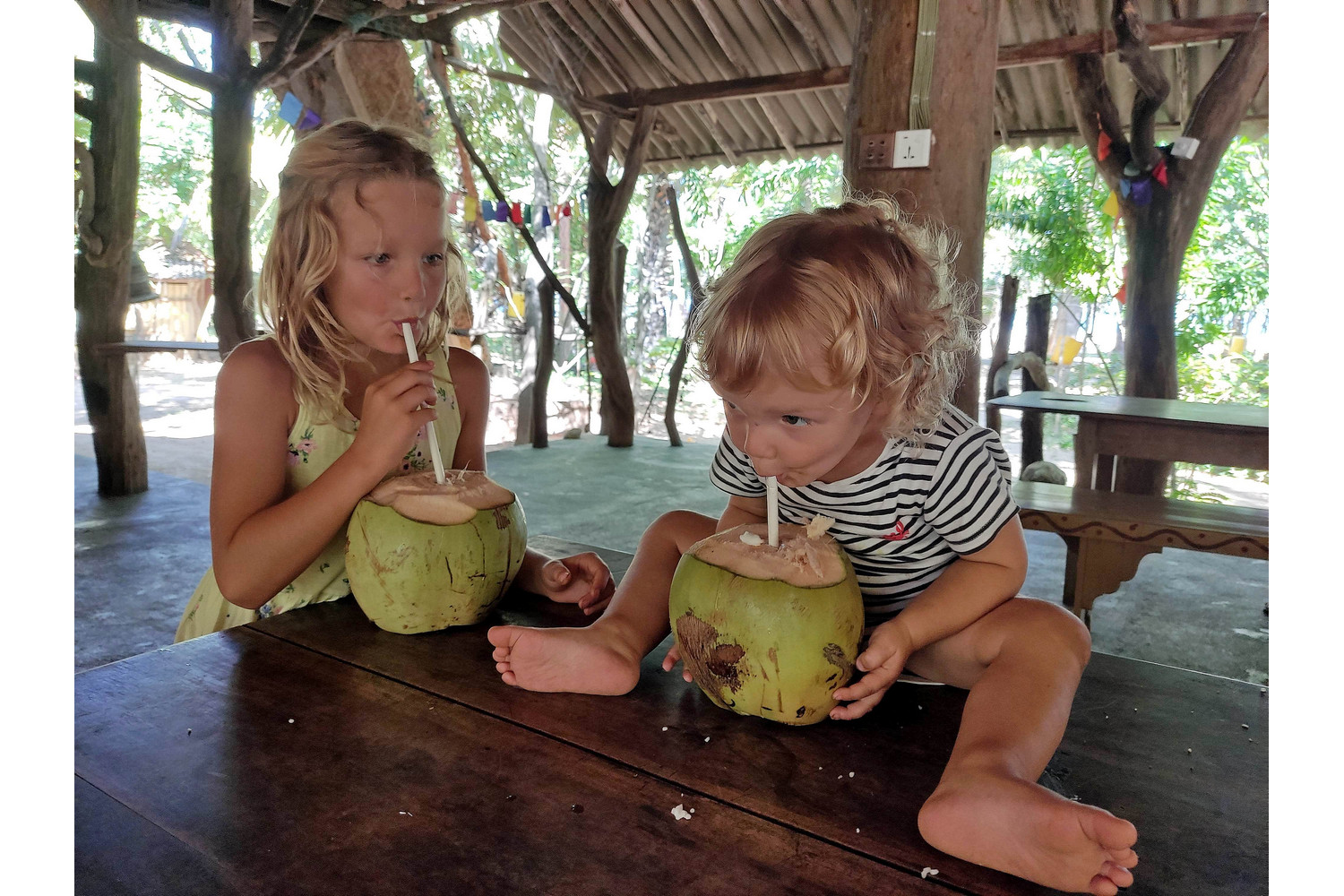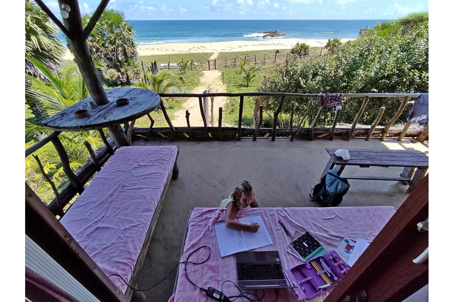 Pewnego dnia Zosia pobiegła za balonem, który wyfrunął z tuk tuka. Jesteśmy na terenie ośrodka przy plaży, nasz domek znajduje się 300 metrów dalej, więc umawiamy się, że jak złapie balon przyjdzie do domu na piechotę. Czekamy i czekamy, nagle pod domek podjeżdża na skuterze jeden z pracowników.