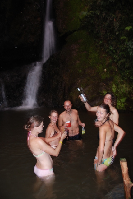 Śpimy w namiotach, tam, gdzie akurat zastanie nas zmierzch. Drugiego dnia rozbijamy się przy wodospadzie. Trochę zimno, ale i tak strzelamy sobie kąpiel, rozpijając przy tym na rozgrzewkę w rekordowym tempie butlę rumu. Potem ognisko, pieczone kiełbaski, ziemniaki… Rano w naszym skacowanym obozie zjawia się mała dziewczynka. „Mama zaprasza na mleko prosto od krowy, zabierzcie tylko kubki”. Schodzimy wąską ścieżką na pastwisko, gdzie doją właśnie krowy. Kamil i Bartek też próbują swoich sił, ale pani idzie to zdecydowanie lepiej. Śniadanie pierwsza klasa :-).
