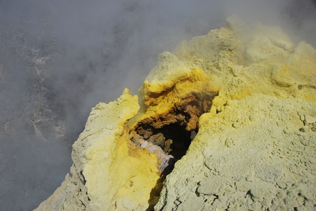 Księżycowo tam na górze. I dymi. I śmierdzi siarką. Lokalesi zbierają jej kawałki do torebki, żeby potem sprzedać, bo to podobno leczy skórne choroby…