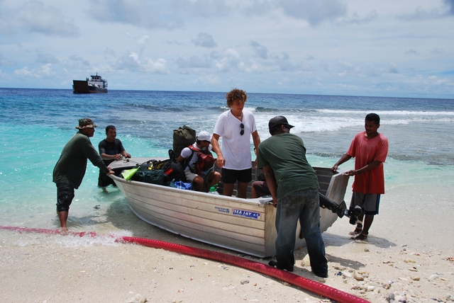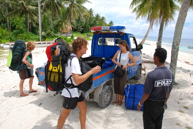Nie ma portu. Statek staje na kotwicy, a po towar (w tym kurczaczki pysznie pachnące) i ludzi podpływa z brzegu łódka. Wysiadamy na plaży. Ciemno. Podchodzi do nas trzech lokalnych policjantów. Początkowo traktują nas podejrzliwie, chcą rewidować bagaże. Na pobyt na Kili podobno trzeba mieć specjalne pozwolenia… Rozmawiamy, tłumaczymy, że przyjechaliśmy obejrzeć zaćmienie słońca, odpłyniemy ze statkiem, który ma stać na Kili do jutra wieczorem. Policjanci postanawiają dać nam pokoje do spania żebyśmy mogli odpocząć po podróży. Podjeżdżają nawet po nas pickupem. Noc spędzamy w luksusie ;-).