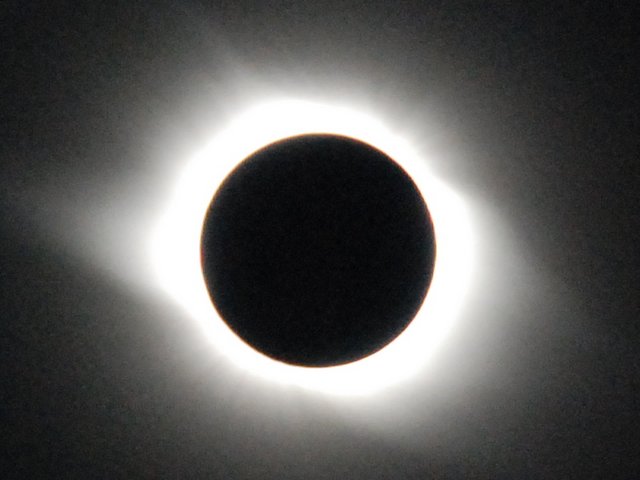 W końcu nadchodzi tak długo oczekiwany dzień. Od samego rana szczęście nam dopisuje. Niebo jest bezchmurne. Szukamy dobrego miejsca do obserwacji. Wybieramy szczyt góry, z którego mamy widok w każdym kierunku. Potem wydarzenia nabierają tempa. Widzimy księżyc powoli zakrywający tarczę słońca i niezwykle zmieniający się świat w miarę „znikania” słońca. Widok z góry jest idealny, żadna chmura już nam nie zagraża! Nadciąga cień księżyca, na horyzoncie jedna po drugiej gasną chmury, zapada ciemność. Pojawia się korona słońca i gwiazdy. W grupie euforia i zachwyt. Niestety po 2 minutach 11 sekundach słońce powraca, a świat stopniowo wraca do normy. Udało się!