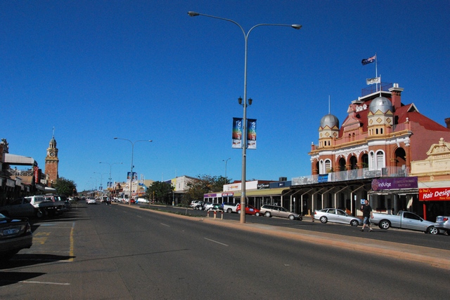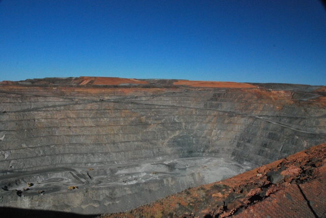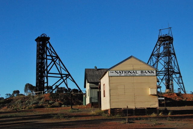 Nikt nigdy nie osiedliłby się w Kalgorie-Boulder, gdyby nie złoto. Legendarna „złota mila” – podobno jedno z najbogatszych złóż na świecie – ściągnęła tu pod koniec XIX w. tysiące poszukiwaczy. Znienacka na środku pustyni wyrosły osady, kopalnie. Doprowadzono linię kolejową łączącą Kalgorie z zachodnim wybrzeżem, ale przede wszystkim zbudowano kilkusetkilometrową rurę doprowadzającą z Perth wodę. W mieście i jego okolicach mnożą się pozostałości z minionych czasów: stare budowle, maszyny. Spora część przedsiębiorstw funkcjonuje do dziś, w tym gigantyczna odkrywkowa kopalnia określana jako „Wielki Dół”. Wzdłuż jej stromych tarasów kursują olbrzylmie ciężarówki wywożące rudę: tak wielkie, że zwykłe samochody wyglądają przy nich jak pudełka zapałek.